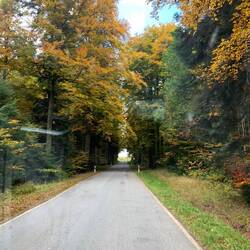Abfahrt mit Sonne um 10:30 Uhr vom Camping in Stockbridge. Nehmen eine schöne Strecke über Land mit viel Hecken und Tunnel -Baumalleen. Es herbstelt,