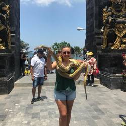 Sind zum Uluwatu Tempel gefahren und haben dort alles angeschaut, war eine schöne offene Tempelanlage an einer Klippe mit tollem Meerblick. Danach haben wir an einem Strand in der Nähe denRead more