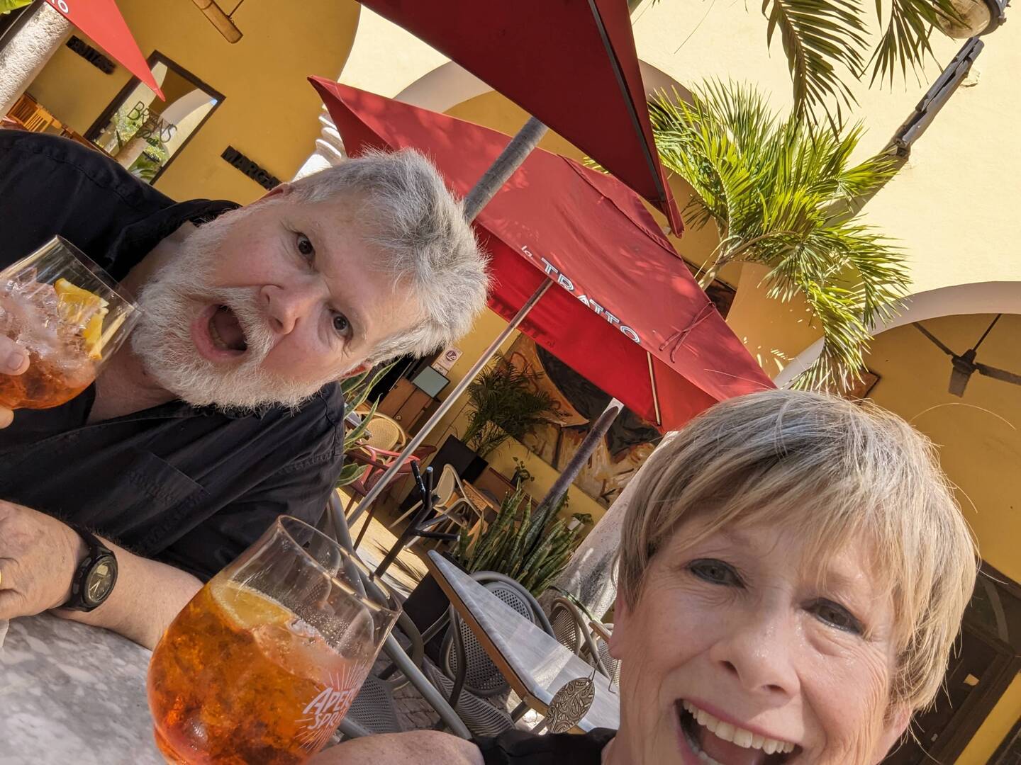 After a few days of illness we have ventured out and we are sitting in Santa Lucia Park enjoying an Aperol spritz