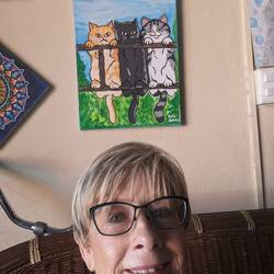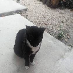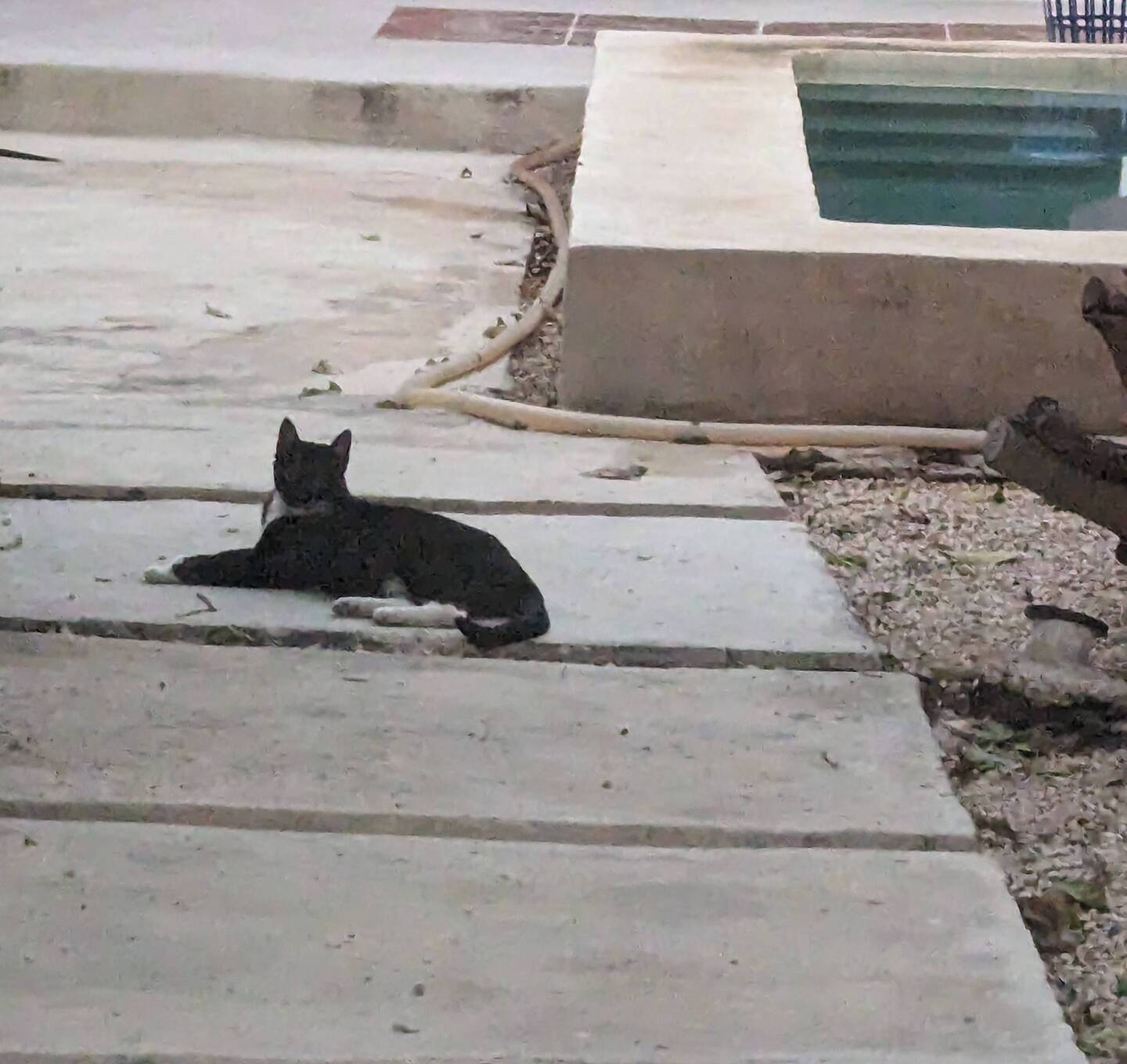 There are several cats who make daily visits along the walls beside our patio but this one has started coming down for visits. We are of course leaving food out for whichever cats need to feed.