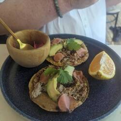 We had a lovely relaxing day to celebrate my birthday. Traveled to a traditional Yucatan restaurant recommended by our Airbnb host. Some cochinita pibil (shredded pork), loganiza rozada (roastedLes mer