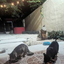 This kitty comes to visit daily and now seems to be trusting us enough to have a lay down in our presence. As are the greckos, one of which decided to take a dip today in the cat water dish.