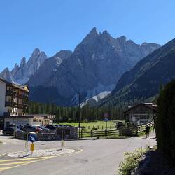 Mit dem PKW vom Caravanpark Sexten bis zur Mautstation Pragser Wildsee. Bis 9:30 h ist die Mautstrasse mit dem privaten PKW befahrbar, danach nur mit dem Bus oder für 40 € Maut.