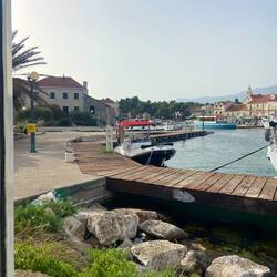 Drüben auf Brač finden wir eine nette kleine Badebucht, wo wir mit Bug- und Heckanker liegen. Für diesen Tag haben wir uns das Putzen vorgeben. Es bleibt nicht aus, dass das weiße GFK und die weißen Polster schmuddelig werden. Später kommen noch Leute von dort in der nähe gelegenen Häusern hinzu. Kurze Zeit später brechen wir auf nach Pučišća. Dort wird seit langer Zeit Mamor abgebaut, der unter anderem im weißen Haus verbaut sein soll. Uns wurde der Ort schon vor 2 Jahren empfohlen, aber es hatte einfach nie gepasst. Im Prinzip sieht man vom Wasser direkt, dass man richtig ist, weil sich dieser Steinbruch über die Küste erstreckt. Pučišća ist natürlich aus dem gleichen hellen Stein gefertigt. Im Hafen sind wir dieses mal schlauer und lassen uns direkt den Preis nennen. Es war gestern einfach so ärgerlich, dass wir um halb 7 nochmal los mussten. Mit 3€/m sind es hier 21€, die wir bereit sind zu zahlen. Trotz dass die Stadt super schön ist, gibt es hier nicht viel. Da die Stadt keine Fährstadt ist, verirrt man sich hier nicht zufällig hin. In einer der drei Badezonen kühlen wir uns ein letztes Mal ab, nachdem wir links wie rechts ums Wasser gelaufen sind. Seit Tagen haben wir mal wieder eine richtige Dusche. Abends gehen wir dem Gaskartuschenmangel geschuldet in der Konoba Aquila essen. Es gibt Pizza. Später wird dort nochmal Fußball laufen, dennoch verbringen wir den Abend auf dem Boot und gammeln einfach mal.もっと詳しく