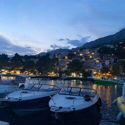 Der Nachmittag und Abend wird hakelig. Das Tagesziel Makarska liegt in Sicht, die sind aber voll, sagen sie. Sie geben uns den Tipp, dass Baška Voda auch schön sein soll und wir doch unser Glück dort versuchen sollen. Das Glück scheint auf unserer Seite, denn telefonisch sagt man uns, man habe was frei. Nachdem wir dann dort angelegt hatten und die Port Authority unsere Papiere hat, bekommen wir endlich wieder Wasser. Irgendwie blöd, dass es als dauert, bis man uns einen Preis nennt und wir die Papiere zurück haben. Schließlich finden wir die Port Authority wieder und er sagt, dass die Nacht 56€ kostet. Von unseren Österreichischen Hafennachtbarn wissen wir, dass diese lediglich 28€ pro Nacht zahlen. Zumal letztes Jahr wohl noxh 3€/m genommen wurden und jetzt 7€/m. Warum sollen wir jetzt das doppelte zahlen? Gut, dann eben nicht. Also packen wir die Verdecke zusammen und fahren bei 2 m Seitenwelle in den nächsten Ort nach Brela- auf gut Glück, denn eine Telefonnummer haben wir nicht. Im Hafen sagt man uns 21€ pro Nacht- perfekt, das nehmen wir an und haben direkt eine Muring. Im Prinzip machen wir auch nur fest, schließen ab und dann wird ein Restaurant gesucht, denn es is schon halb 7. Es wird das "Hrast".もっと詳しく