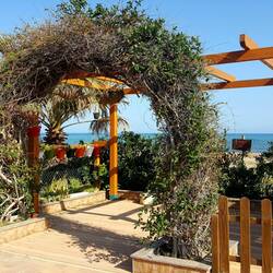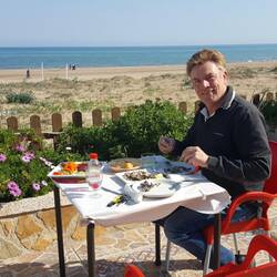 Haben das Mittelmeer erreicht, sind auf einem CP eingecheckt und haben erstmal ein Mittagessen mit herrlichem Blick aufs Meer genossen.