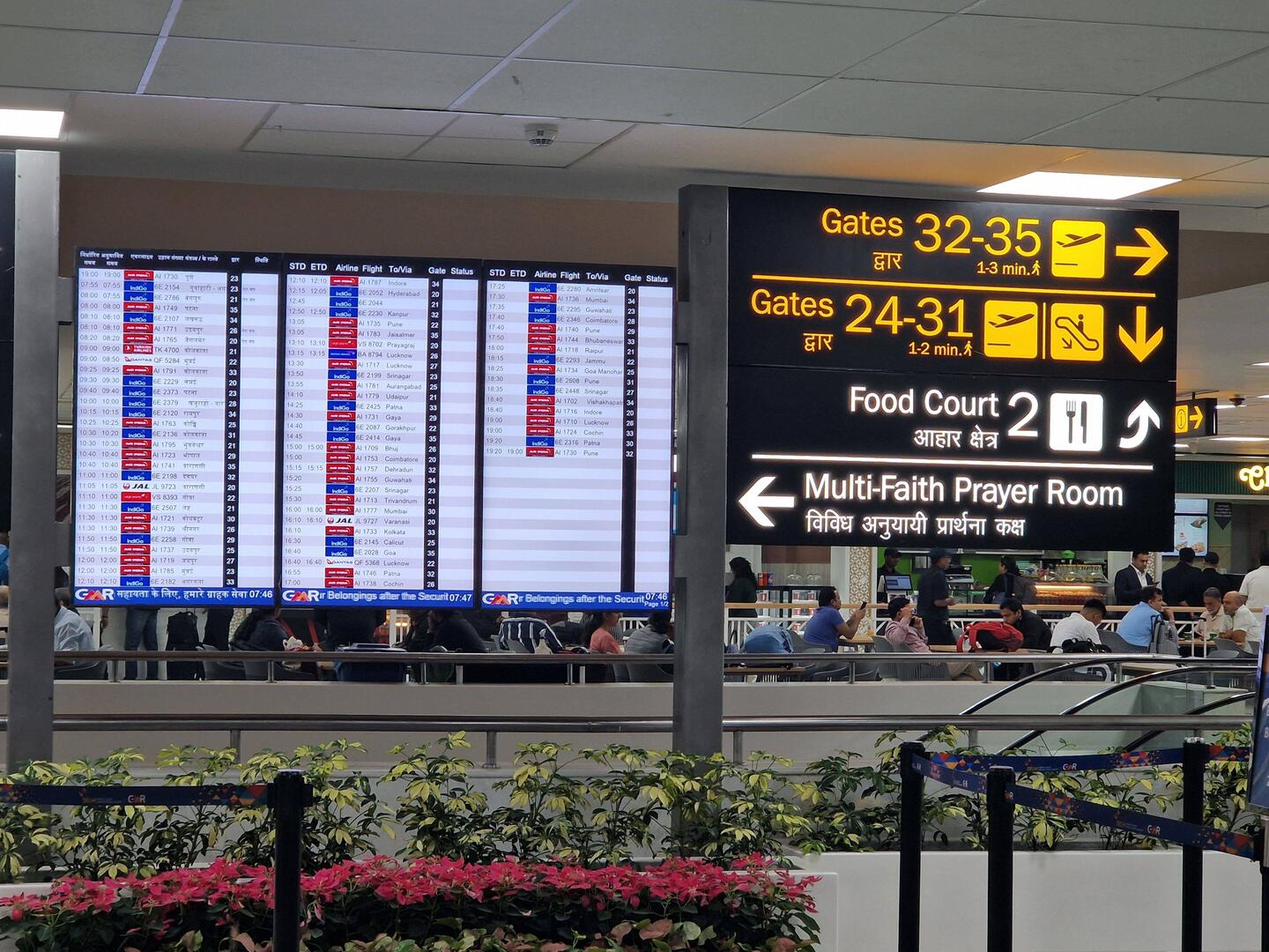 Some scan bags before entering the building. The Indian airports have the Military on the door and you have to show your boarding pass and passport at the entrance to the building, then again before security check of bags,again at the boarding gate and again at the steps of the plane.