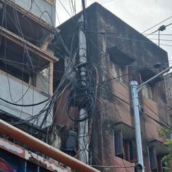 This was stark..the ground was strewn with mud and rubbish, as well as protuding pipes. Overhead the electric wires hung down, even to the point of touching the top of my head .