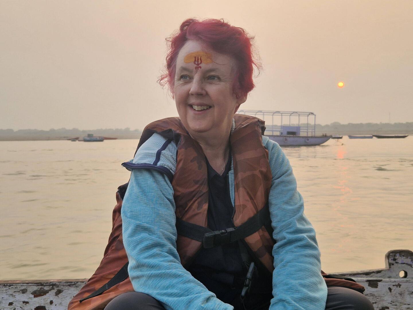 Once again, we had a private boat! It was actually nicer than the morning boat and no mountaineering to get in it but a brief walk through the wet sand and water of the Ganges...for which I was very pleased to be wearing my hiking boots.