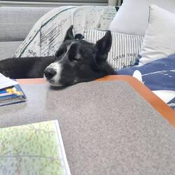 Unsere Isy ist völlig geschafft von der Fahrt .