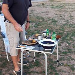 Heute mussten wir etwas länger suchen, um den optimalen Stellplatz (Strand, wenige Camper, ..., Dusche!) ca. 20 km vor Kalamata zu finden.