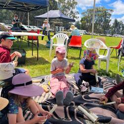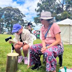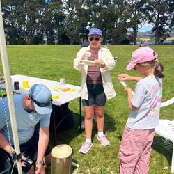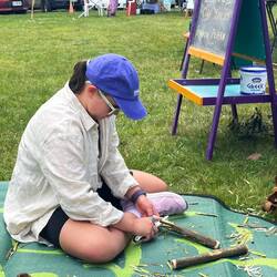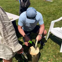 We met Monique Greg and the girls and Maggie and her kids . They carved tapping sticks