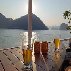 Heute mussten wir um 8 Uhr fertig zur Abfahrt sein. Unser Ziel: Halong Bucht 🌊 Unterwegs machten wir Pause bei der Perlenzucht-Farm. Dort wurde uns gezeigt, wie man die Austern vorbereitet (bei denもっと詳しく