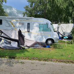 Gestern nach vielen Staus doch noch in Cecina Mare angekommen.Div.CP waren schon voll.Habe doch noch für meinen 6m Bus ein Plätzli bekommen😉.