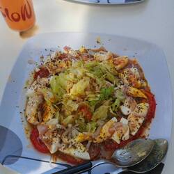 Bade Aufenthalt bei 34 Grad bevor es auf die Fähre geht.