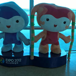 Die Freiwasserwettbewerbe waren in unseren Altersklassen entschieden und die nächsten Wettkämpfe suchen nun ihren Weltmeister im Becken von Gwangju. Bei unseren Freunden kam Aufbruchstimmung auf. Sie hatten schon die nächste Übernachtung in Gwangju gebucht. Wir blieben noch eine Nacht länger in Yeosu und eroberten das Sky-Cafe an der Wettkampfstrecke. Zwei aneinander stehende alte Zementsilos bilden das Grundgerüst für den Sky-Turm. Im Inneren befindet sich eine Modelanlage zur Wasserverwendung und der Fahrstuhl nach oben. An der Außenseite des Turms wurde eine Pfeifenorgel angebracht, die täglich um 14.00 Uhr zu spielen begann. Sehr schön! Das Cafe bietet viel Platz, eine kleine Snackbar und ganz viel Aussicht. Rundherum. In Richtung Nord-Nord-Ost zieht sich die Stadt entlang der Berge, auf der Ost-Seite liegen eine unbestimmte Anzahl an Schiffen auf Reede, im Südosten befindet sich die Wettkampfstrecke mit den dahinter liegenden exponierten Bauten und der abschließenden Blick führt einen auf das Internationale Expo-Gelände von 2012. Von der luftigen Höhe kann das Aqua Planet Yeosu gut erkannt werden. Darin sind u.a. Beluga Wale und Piranhas zu sehen. Es ist eine Empfehlung von anderen Sportlern, da wir selber noch keine Gelegenheit hatten, die dargestellte Meereswelt zu bestaunen. Aber vielleicht morgen – vor unserer Abreise.