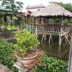 In Tam Coc angekommen, fand ich ein super süßes Homestay mit schönem Garten, Terrasse auf Stelzen auf einem kleinen Fischteich und einem eigenen Bungalow für mich. Ich überlegte, was ich mit demLeia mais
