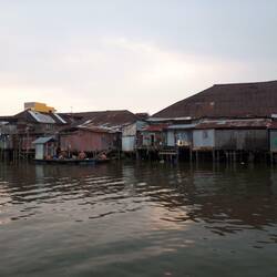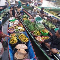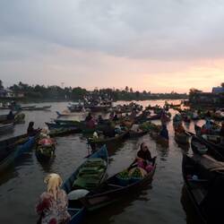 Heute ging's um 4:30 mit einem kleinen Boot, dem Fahrer und einem Guide zu den schwimmenden Märkten. Dort kommen etliche bunte Boote auf dem Fluss Martapura zusammen, um bei Sonnenaufgang Obst undEn savoir plus