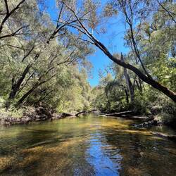 This small diversion along a sealed road lead to Honeymoon Pool on the Collie river. This is a local camping area and picnic ground with the most beautiful swimming hole. I was totally whacked and the water beckoned. It was cold but oh so therapeutic. After a few dips and a chance to regroup I was headed for tonight’s resting place. Not before encountering a last descent. It is quite rocky and has several more steep switchbacks.