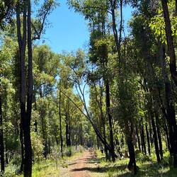 This firm single track follows a once used railway trackbed. It has few bends and gentle grades. It made for a fast most enjoyable session. Along the way I was raced by emus, escorted by a squadron of red tail black cockatoos calling out my name. Well it sounded so! I even had track sharing moments with of a number of goannas who just seem to own the trail and appeared to scoff as I offered a greeting.