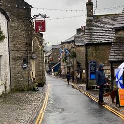 It was already raining when we got up this morning but Alanna still headed off for a run. On her return we decided to explore Yorkshire a bit more dispite the weather. We first visited a town full of character called Knaresborough. The town centre is above the River Nidd and its main feature is the railway viaduct which was best viewed from the medieval castle remains above it. We walked around the streets and only about half the little shops were open as it was only the 2nd of January. We drove on to the next town which was Pateley Bridge. The drive was on very narrow roads with stone walls on either side and there was a lot of surface water. Pateley Bridge was also full of character and perched on a steep hillside. We stopped into a very old fashioned pub for a pie and veggie lunch. We then moved onto Grassington which was another town on a steep hillside. The shops were interesting but very small and old fashioned and the buildings full of character. By now it was 3 pm and already getting dark so we decided to find a route home. I was driving and again it was a huge test of my skills as I negotiated many roundabouts in the dark, a lot of water on the roads, and also a huge build up of transport around the city of Harrogate and persistent rain. We were so pleased to get home and inside and relax. At 6 30pm we headed into town for a lovely pizza at an Italian restaurant. It was a dismal night with few out and all under umbrellas, including the group going by on one of the many ‘deathly dark ghost tours’ run in the city- a good night for that!Read more