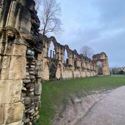 Today more than made up for the average day yesterday. The morning was fine with the ground fog and sunlight creating a lovely scene from the back door. We left mid morning to collect some groceries from the nearby M&S Food Hall, before detouring 20 minutes to Castle Howard. Castle Howard is a private residence and has been the home of the Carlisle branch of the Howard family for more than 300 years. We paid to enter the property and view the surrounds, and it truly was beautiful, especially as it was such a clear still morning. The reflections on the large ponds were stunning as was the building itself. We left there to return our groceries before running up to the road to catch the bus which kindly waited for us. Town was completely different today as everything was open and lots of people were out, many with their dogs. We had a lovely coffee in a cafe above a bookshop before splitting up for some shopping. Alanna found a beautiful coat which was on sale and is now heading back to London with her. After two hours we met up with David and walked a short distance to the museum gardens for some serious squirrel spotting. Within 30 metres we had found three of them and they were so tame they took the nuts we had brought with us, from our hands. Further down the path there were several more and we spent ages trying to get the ultimate photo. The grounds of the museum were themselves beautiful as they are set against the stunning backdrop of the medieval ruins of St. Mary’s Abbey. We wandered back into town for our final drink in York at the The Punch Bowl that had its own very interesting history. We caught the bus home and settled in for yet another delicious ‘hunters and gatherers’ dinner. It was the end of a perfect day and we are now ready to leave tomorrow for Nottingham.Meer informatie