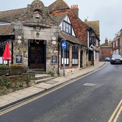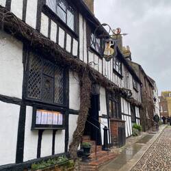 We were sorry to be leaving Cambridge as we really had loved it. Our morning started with breakfast at Gail’s at Cambridge Railway Station, before we farewelled Alanna as she headed back to London. We set off on what ended up being a very interesting journey to Rye, a village of 4000 people, south of London and nearly on the coast. With me navigating we were on the main highway until suddenly we weren’t! The trip took nearly an hour longer but we went through many small villages and on lots of very narrow roads and lanes, some of which had minor flooding on them. We stopped on the side of the road, but in view of Bodiam Castle, to eat out Pret A Manger sandwiches before carrying on to arrive in Rye at 2pm. Our accommodation, Jeakes House, is amazing. It is a house built in the 17th century, and sits on cobbled Mermaid Street. The cobblestones are actually small stones and the street itself is one way with no parking. Consequently we unloaded our bags before driving the car two blocks to a secure car park. On the way back we stopped for a coffee and viewed all the surrounding houses which are also very old. Our room, one of several in the house, has a four poster bed and the furnishings match the age of the house. Despite the steep staircase to the room, it is luxurious with our breakfast included. The is also a beautiful bar down stairs and an honesty box for the drinks you can help yourself too. We relaxed in our room, and I had a delicious bath before heading down the street to a very old pub for a drink. By this time it was nearly dark and the streets looked even more beautiful. We then wandered to the Standard Inn which was recommended by the Jeakes House host. It did not disappoint as not only did we have a delicious fish and chip tea but the atmosphere was lovely with an open fire, several dogs and some lovely locals to talk to. Our night finished with a walk back and time sitting chatting in the bar to another guest who was from London. We all then headed off to bed after discussing how good the breakfast is meant to be.Meer informatie