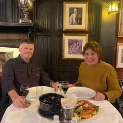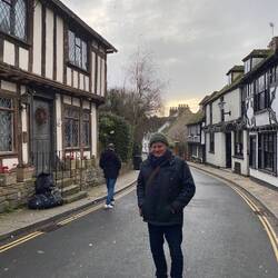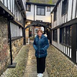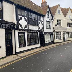 A beautiful relaxing day on our trip as we explored Rye. It is a beautiful village and just so full of character. You want to take photos at every corner and it is so quiet and peaceful- just a few locals and tourists walking about. Our accomodation is so special. Part of the deal was the breakfast and it was so good that we have had to eat little else all day. It was served in a beautiful old dining room and there were several other guests eating there too. There was cereal and fruit followed by a choice of something cooked from the extensive menu. Also toast and coffee/tea served at the table and of course all on beautiful old crockery. It was a real treat. We then headed off to explore the castle, the town gate, Mary’s Church and graveyard and the many quirky little antique and craft shops that are scattered about. The castle also known as Ypres Tower, was built in 1249 and it was fascinating and had a very basic museum set up in it, but it was still very interesting. We spent until 2 pm walking and by now surprisingly enjoying the frequent snow flurries which just added to the scenic streets. It actually wasn’t that cold, and the sun kept shining in between. Apparently it was unusual to have snow in Rye, and we joined the locals trying to take photos of it. After a lovely coffee stop we headed to the car for a trip out to Winchelsea Beach. It was 10 minutes away and with it being such a miserable afternoon it was not at all inviting- but not actually sure it would even be on the height of summer even though there were many permanent caravan homes there. We drove back to the car park and wandered up to the Standard Pub for a lovely drink with Tony and Tim ( T&T) , the local couple who had befriended us last night. They are real characters and very interesting to chat to. On returning to Jeakes House we relaxed in the lounge which is just beautiful and so warm, before heading across the road to the Mermaid Inn for dinner. The meal was two courses but preceded by a canapé and also breads. The main was a seafood platter that we shared followed by delicious desserts. The service was excellent, as was the company of two different couples that we ended up talking to. It was a lovely night and we have our fingers crossed that the sunshine promised for tomorrow’s trip to Castle Combe will eventuate.Meer informatie