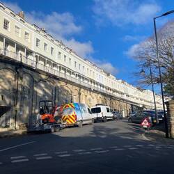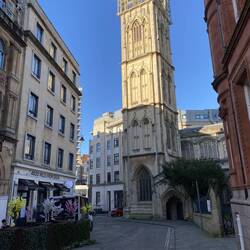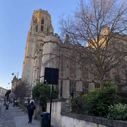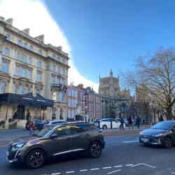 Oh dear- we still haven’t seen Castle Combe! A chain of events led to us spending a fairly miserable night 5 kms down the road. The accommodation was very average in the tiny upstairs room across the road from the hotel. The shower was nearly cold and David ended up with a probable case of food poisoning. He was unwell during the night and only just well enough to be up and about in the morning. I wandered across the road to the main hotel to find the reception very frosty and my cup of coffee instant and the toast white and frozen with no spreads. On returning to the room we loaded up the car to find the road very icy, as well as the paths, as we were in a very shady valley. Consequently we decided to abandon heading further down a treacherous road to view the main village and instead were relieved to get on the main road to Bristol which was a very easy 30 minute drive. Our accomodation here (last photo) is a beautiful apartment in a huge old row of multi storied apartments in a lovely part of Bristol, Clifton. And what’s more, we were welcomed by some very active squirrels on the front lawn. Once we had unloaded, David headed off to bed and I walked 35 minutes down into the main centre of town. I spent a lovely 3 hours wandering around town and seeing some of the very interesting old architecture that is part of the town and university. The city has many steep streets and interesting views. It was remarkably quiet and calm for a city, but it has plenty of character. My walk back was mostly uphill, but easy. David had improved a lot but wanted little for dinner so we strolled 15 minutes to Clifton for a quick Wagamama meal which satisfied both of us. We were back by 6 30pm and settled in to watch an excellent series, Fool Me Once. Hopefully tomorrow will be a better day.Meer informatie