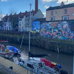 What an amazing day in such an interesting city. 24000 steps later we feel we have seen as much as we can. As David had recovered from his bug, we planned our day and set off for a cafe up the road. We had a lovely breakfast there and headed off to Clifton Village which actually is near to our accomodation. It was a beautiful little area of quirky shops, cafes and fruit and vegetable stalls. We enjoyed poking around the shops and taking our time to soak up the atmosphere. We then carried on to the Clifton Suspension Bridge, which Bristol is so well known for. It spans the Avon Gorge and the River Avon and is a truly incredible structure considering it was completed in 1864. It is over 100m above the river and you can walk or drive over it. The view down was over Bristol and the road metres below. We spent ages trying to get the ultimate photo, and we also walked up the hill a bit further to the observatory building to get a better view. We then walked down to the flat part of town and our hour long walk took us past the historic floating harbour. The name comes from the fact that the water in the harbour remains at a constant level and is not affected by the tides of the River Avon which flows into it. There were many boats moored there, with most of them being long house boats. The scene was beautiful, especially as in the background were the streets of Bristol on the hills and the many multicoloured old and new appartments. To our delight we totally by chance found a piece of wall art by Banksy there. Apart from a fence in front of it there is nothing to identify its location and it sits on a wall just off the street. We were just so lucky to spot it. We continued to Wapping Wharf which was a new development, before crossing the river and heading back into town. By now we had researched Banksy and were able to locate one more piece of his art work in the centre of town. The graffiti art of Bristol is everywhere and most are works of art themselves. After another coffee we had a look at the shops and then took the 35 minute walk back up the road to the flat. The weather was generally warm and sunny all day and we loved the character and quirkiness of Bristol. For a city it is remarkably calm and peaceful with a lot of trees and green areas. It reminded us of both Dunedin and Melbourne. It is also very easy to get around and the people seem friendly. The day ended really well with dinner in town at an Italian restaurant, the same chain as the one in Frankfurt and equally as good. Needless to say we ordered an Uber! Tomorrow we head for London via train to spend our last weekend with Alanna.Meer informatie