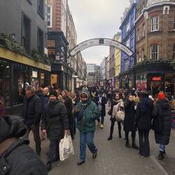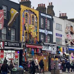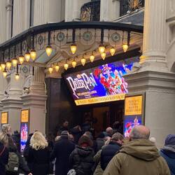 A wonderful way to spend the last Saturday of our holiday. We got up in time to use underground ( yet again) to go to Campden market with Alanna. So good to once again have her as our tour leader! The Camden markets are a number of adjoining large retail markets, often collectively referred to as Camden Market or Camden Lock, located in the historic former Pickfords stables, in Camden Town, London. It was probably the largest market we’d ever been in with stall after stall selling food, clothes, jewellery and a lot of very alternative clothes and accessories. It had such cool vibe and by the time we left it at 12 pm it was packed. Even the shop fronts of the main shopping area were works of art. Alanna and I shared an amazing treat from Humble Crumble (all over London) where you choose the cooked fruit, the amount of crumble and the topping, including hot custard, and they make it in front of you. Delicious! We then used the train to get into Soho and stopped at a lovely old pub for a drink. We left there in time to be at the London Paladium by 2 30pm for our second show in 24 hours. We had booked the pantomime Peter Pan and it was amazing. The venue was spectacularly beautiful and packed, and the show had that many Wow moments. Julian Clary, Jennifer Saunders, Niger Havers and Paul Zerdin (ventriloquist) and were so funny and so clever and the costumes were amazing. Then there was the singers/dancers and acrobats and an orchestra. There were many special effects include Julian Cleary being flown up from the ground, past the audience to the very top where he disappeared through the roof. It was two and a half hours of utter entertainment. We left there for a lovely drink in another old pub with great atmosphere and then had pizza at a cool Soho restaurant. As usual our day ended with the subway trip home. The light display at Tottingham Court Station (and the mice) once again catching our attention.Meer informatie
