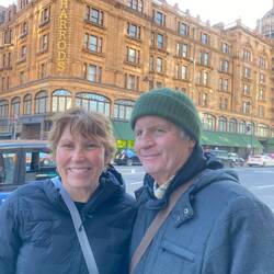 A lovely end to our trip but sad to be saying goodbye to the best tour guide ever! Thank you, Alanna. We have loved touring with you. So much fun. Today started with an Uber ride to Alanna’s flat where we left our bags. We then walked all the way down through Hammersmith and the beautiful Notting Hill area, stopping for coffee and cinnamon buns, until we reached Hyde Park, which has always been one of our favourite places. It was a beautiful clear day with hardly a cloud in the sky. There were lots of people about and lots of dogs and also lots of squirrels. It was a gorgeous relaxing walk and we finished with a walk around Harrods barely able to even buy anything in the souvenir shop! Very interesting though looking at all the beautiful things and shop displays. We walked back to Hyde park to see more squirrels and then have lunch at the lovely Serpentine cafe overlooking the lake. We made our way back via train to pick up our bags, and our tour leader took one last trip with us to Heathrow. We have plenty of time at the airport but are well ready to be home, and while sad to farewell Alanna we are definitely not sorry to have had our last ride in the London Subway for a while!Meer informatie