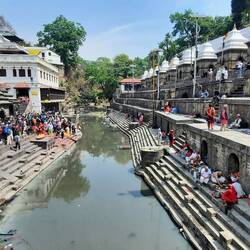 Schon schockierend den Hinduistischen Pilgerort und Tempelanlage mit Menschenverbrennungen öffentlich zu erleben. Der "heilige" Fluss ist schockierend dreckig und stinkend. Stiere laufen unten herum.もっと詳しく
