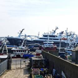 We arrived in Fraserburgh and parked in a supermarket carpark to have some lunch before heading along the road to a "Motorhome Aire" which is someone's property where self-contained motorhomes can stay overnight. We met the owner Greg who showed us around and gave us directions into town. Boy could that man talk. We eventually made a beak for it and walked the 3 km or so into town. We opted to give the Scottish Lighthouse Museum a miss even though it is Fraserburgh's main claim to fame and wandered down to the port to find some serious fishing vessels that are obviously very capable of handling the North Sea conditions. From Fraserburgh it is less than 200 miles to Norway.