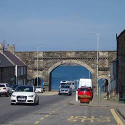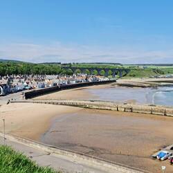 The day was a meander along the lovely fishing villages of the Moray Coast heading east to Fraserburgh. First stop was Buckie where we filled up with diesel and coffee, followed by Portknockie where we stopped to see Bow Fiddle Rock and then on to Cullen which is a beautiful town with two train viaducts. We had a wander around there for an hour and admired all the beautifully maintained cottages.