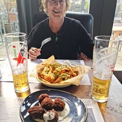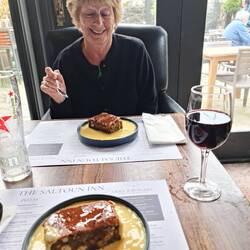 From there we had a wander around the town and ended up in the pub about 2.30 pm where we had a few beers that turned into a few more beers and then entrees of Popcorn Haggis and Jalapeno Chedder chips. By then it was after 5 pm so we had sticky toffee and custard puddings each and I had a very nice glass of Shiraz.