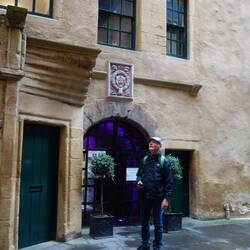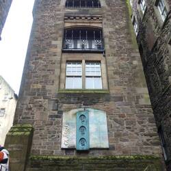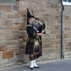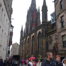 Our camp is 6 or 7 kilometres out from the centre of Edinburgh and we arrived there to find that it was quite foggy. We started our tour at the Balmoral Hotel which is a grand old hotel built originally for the railway. I read that the clock in the tower is set 2 minutes fast to encourage rail users to get to the station early. The only day of the year that it is on time is 31 December for obvious reasons. We then started up the hill where you could just see the castle from time to time through the fog. At the University there were lots of police motorbikes and black Range Rovers lined up. We continued our way up the hill to the Royal Mile and amused ourselves for another hour or 2 trying to find the things on the walking tour. At one point we were held up at an intersection for about 20 minutes until Prince Edward was whisked through accompanied by all the police motorbikes we had seen earlier. It was then time for a coffee so we popped into a very nice old hotel to take on caffeine for a change from the usual beer.