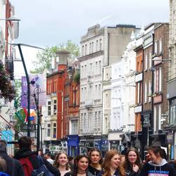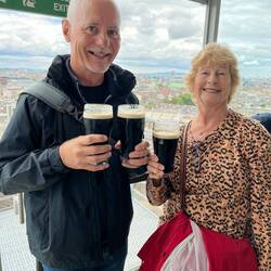 Today is the last day in Dublin for Dawn & Theo. We decided to cross the river and wander up the other side this morning. We discovered that this side of the river was the main shopping area. After a wander around the shops and a coffee we ended up at a an old church which had been converted into a great pub. By then the temperature was in the mid 20's so we stopped for a beer sitting outside in the courtyard. That was so pleasant that we had another one and a bite of lunch. A couple of hours later we wandered on and found an outdoors clothing shop that was having a closing down sale. Dawn bought a pair of hiking boots, Gaye bought a very nice rain jacket for 20 something Euros and I bought a good pair of walking shoes to replace the ones I bought for France in 2015 for 50 something Euros.