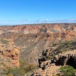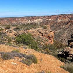 Wir machen drive through durch den Charles Knife Canyon. Da wir kein Wasser mehr haben, können wir leider Nix wandern und erreichen am frühen Machmittag den RAC Campingplatz in Exmouth.