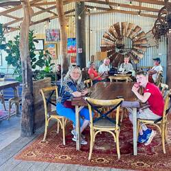 Nachdem Sarah ihren Morgenlauf abgeschlossen und endlich mal wieder ein Kangaroo gesichtet hat, verlassen alle Coral Bay in nördlicher Richtung, halten kurz bei Bullara Station, weil so viele davon schwärmen und uns auch für Linus empfohlen wurde. Naja, klar ist irgendwie schon fesch, zum Glück war es ausgebucht, weil es ist dort natürlich fliegich, heiß und ob man sich da wohl gefühlt hätte, stelle ich mal in Frage. Wir sind froh, dass wir nach einem Café und den Scones, die Sarah später wie ein Stein im Magen liegen, die Station wieder zu verlassen.