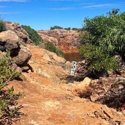 Da Exmouth selbst uns jetzt unternehmungsmäßig aus dem Camper reißt, geht es wieder auf die Straße, fahren einmal im die Spitze und gehen ganze 2 km wandern. Stolz sieht man uns am Ende des Pfades. Doch es hat sich trotzdem gelohnt. 2 kleine Rock Wallabies haben wir erspähen können, sie sind farblich einfach perfekt angepasst.