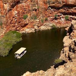 Es fährt auch ein Boot durch den Canyon, zum Glück hatten wir kein Bargeld dabei 45 AUD waren uns für 60 min wirklich zu teuer, zumal wir ja nicht besonders viel mehr sondern nur anders gesehen hätten.
