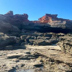 Sarah drängelt, um 7:54 AM will sie am Gantheaume Point sein, da dort echte Dinosaurier Fußspuren zu finden sind. Diese sind aber nur bei Ebbe sichtbar, also Hop Hop, ging es ohne Frühstück losLeggi altro