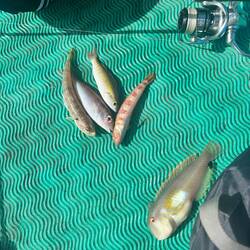 Fishing itself is, as one might expect, relatively uneventful. You sit on the boat, hold the bait in the water, and hope something bites. Occasionally, you take a break, lie down, or even take a nap on the boat. We visited various spots since the first few didn't bring us any luck. I actually managed to catch not just my first fish but a total of six small fish, which Rakka then took home to eat.