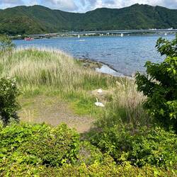 On the way back, we passed by Yagizaki Park, from where we could walk to a pavilion on the lake that is only accessible at low tide. There we could even watch a swan brooding eggs. However, we didn't want to get too close, as a male swan watched us vigilantly as soon as we came into sight.もっと詳しく