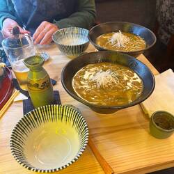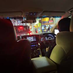 Unfortunately, we couldn't find a place where we wanted to stay. So, we decided to go to a Curry Udon shop a little outside Golden Gai. There, we ordered food, beer, and sake and concluded that we didn't need to go to a bar but would rather buy more sake and ice cream at the supermarket and make ourselves comfortable in our room. The food was delicious, and we happily made our way back. We had taken a taxi four times in Japan, and each time was cool. The taxis don't have a typical back seat but individual seats with armrests that are very comfortable. Therefore, we took one last taxi to a nearby supermarket and enjoyed the ride one last time. At the supermarket, as seems to be the case in all product categories in the world, we found a bottle of sake labeled "Mio." However, we ultimately chose a different one. Armed with sake, we returned to our room and enjoyed it with music and some packing. Quite late, we got hungry again and went to a McDonald's at 1 a.m. On the way, we found a well-dressed Japanese man lying on the ground in front of a subway station, his head resting on his briefcase. Clearly, he was drunk, and when we approached to ask if we could help, he only said that we could help if we drank something with him. Another Japanese person who saw us with him assured us that it was not unusual for people to sleep somewhere after a night out, and we should just let him be, as he would be fine. Nevertheless, we bought him a burger at McDonald's, which we placed next to the sleeping, drunken man on the way back.