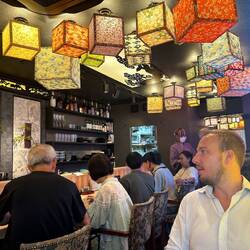 🇺🇸 On our last night, we wanted to go out one more time. There's an area in Tokyo known for its nightlife that we hadn't visited yet called Golden Gai, located in the Shinjuku district. It's a cluster of narrow alleys filled with many bars and a few small restaurants. I had read beforehand that tourists are sometimes turned away from some bars there and are not welcomed. However, when we arrived, almost everything seemed very open to tourists, with just a few bars displaying "Members Only" signs suggesting that tourists should avoid them.