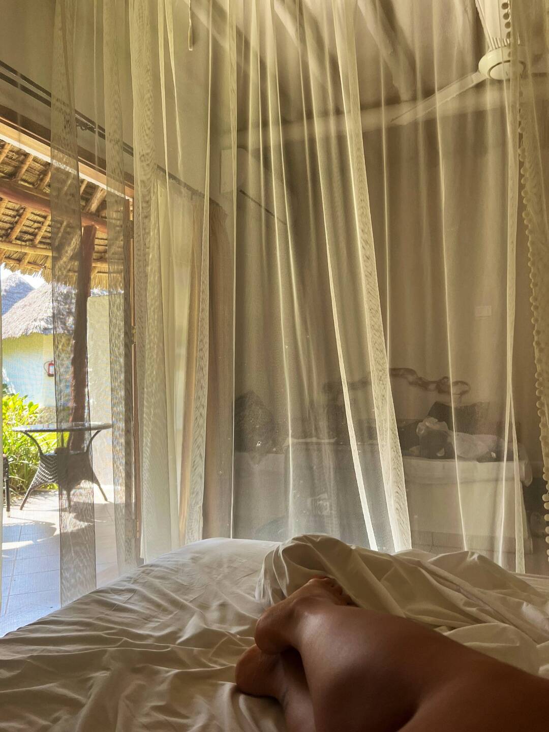 Tag drei. Früh am Morgen wurden wir heute von einem großen Affen besucht. Gekonnt knackte er seine Früchte auf und sprang von Ast zu Ast.