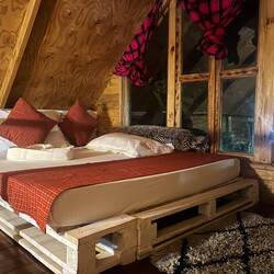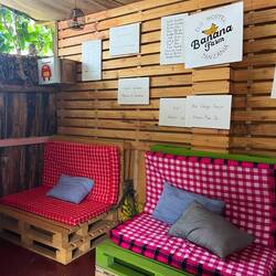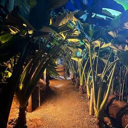 Unsere Ankunft auf der Banana-Eco Farm war pünktlich zum Abendessen. Allein der Weg zu unserem Chalet hat uns schon von der Farm überzeugt. Wir sind gespannt, auf das was kommt!