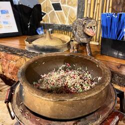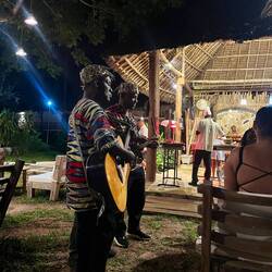 Zu Abend gegessen, haben wir heute im African Restaurant. Zur Begrüßung gab es ein nationales, alkoholisches Getränk. Die Stimmung war ausgeglichen und beeindruckend. Für jeden Tisch wurde einLæs mere